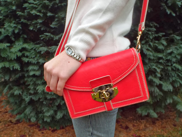 Recently I can’t seem to stop wearing turtlenecks, they’re just so comfortable and versatile. I paired a white version from Primark with these incredibly old pinstripe jeans from Topshop and taking a risk on the cold weather, my Zara silver flats made an appearance to spruce up the basic ensemble. This red Yumi bag was a 21st birthday present from a friend and it never fails to add a little zing to an outfit!