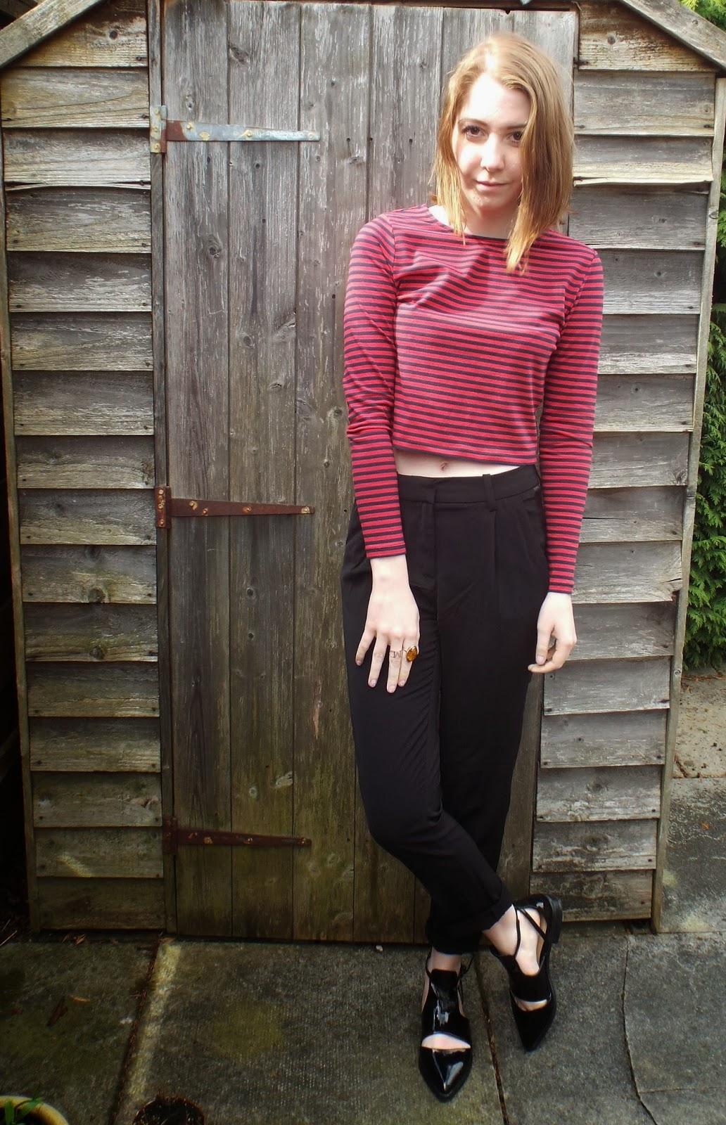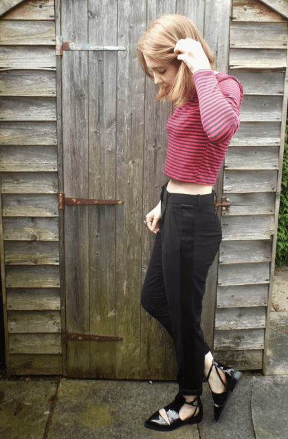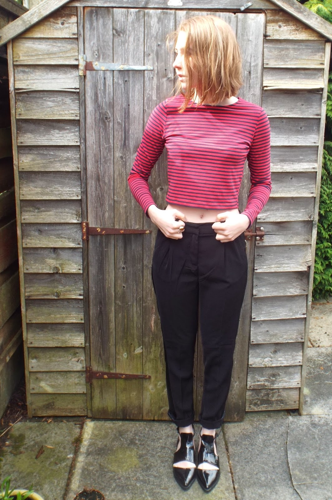 I recently did a spot of shopping at the Trafford Centre, and bought this Forever 21 crop-top and these H&M trousers. I have been after a pair of high-waisted black trousers for what seems like a lifetime and finally found this perfect pair for a measly Β£20. I think they have a ‘sports luxe’ kind of vibe, which is a style I never thought I’d buy into, but I love their casual yet dressy feel! Another style I don’t usually opt for is the crop-top. I’m not a huge fan of showing my ghostly white stomach but there was something about this long-sleeved nautical version that called out to me, so into my wardrobe it hopped.