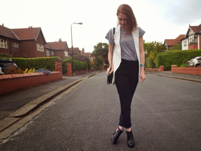 Primark Waistcoat// Primark Top// H&M Trousers// Pull&Bear Boots// H&M Bag// Customised Ring// Topshop Earrings