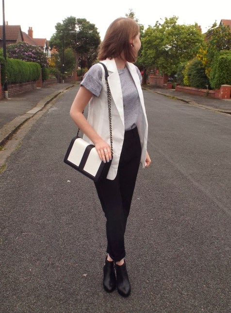 I’ve always been a fan of mixing dressy and casual pieces for a daytime look that has a polished yet laid back feel. For me Zara are the front runners for sleek tailoring, and I spotted their beautiful white sleeveless blazer a while ago which I’ve been dreaming of ever since and hoping the £50+ price tag may decrease somehow. But once again Primark have come to the rescue and created a sheer-backed doppelganger which I convinced myself would be a crime to leave behind at £15! Even my boyfriend oh so flatteringly comparing it to a ‘labcoat’ didn’t stop me, so I suppose I’ll just have to embrace my inner Nutty Professor.