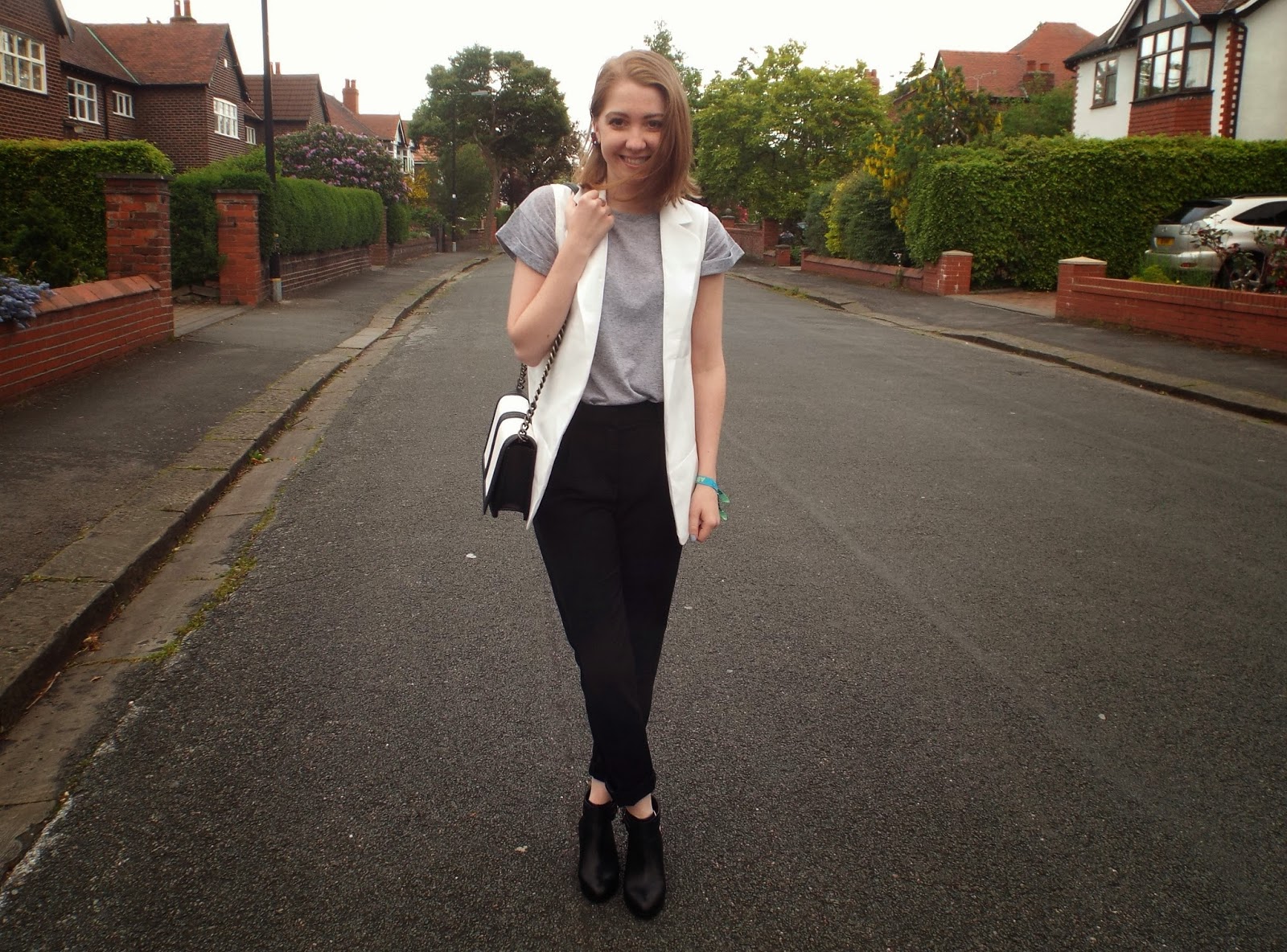 Primark Waistcoat// Primark Top// H&M Trousers// Pull&Bear Boots// H&M Bag// Customised Ring// Topshop Earrings
