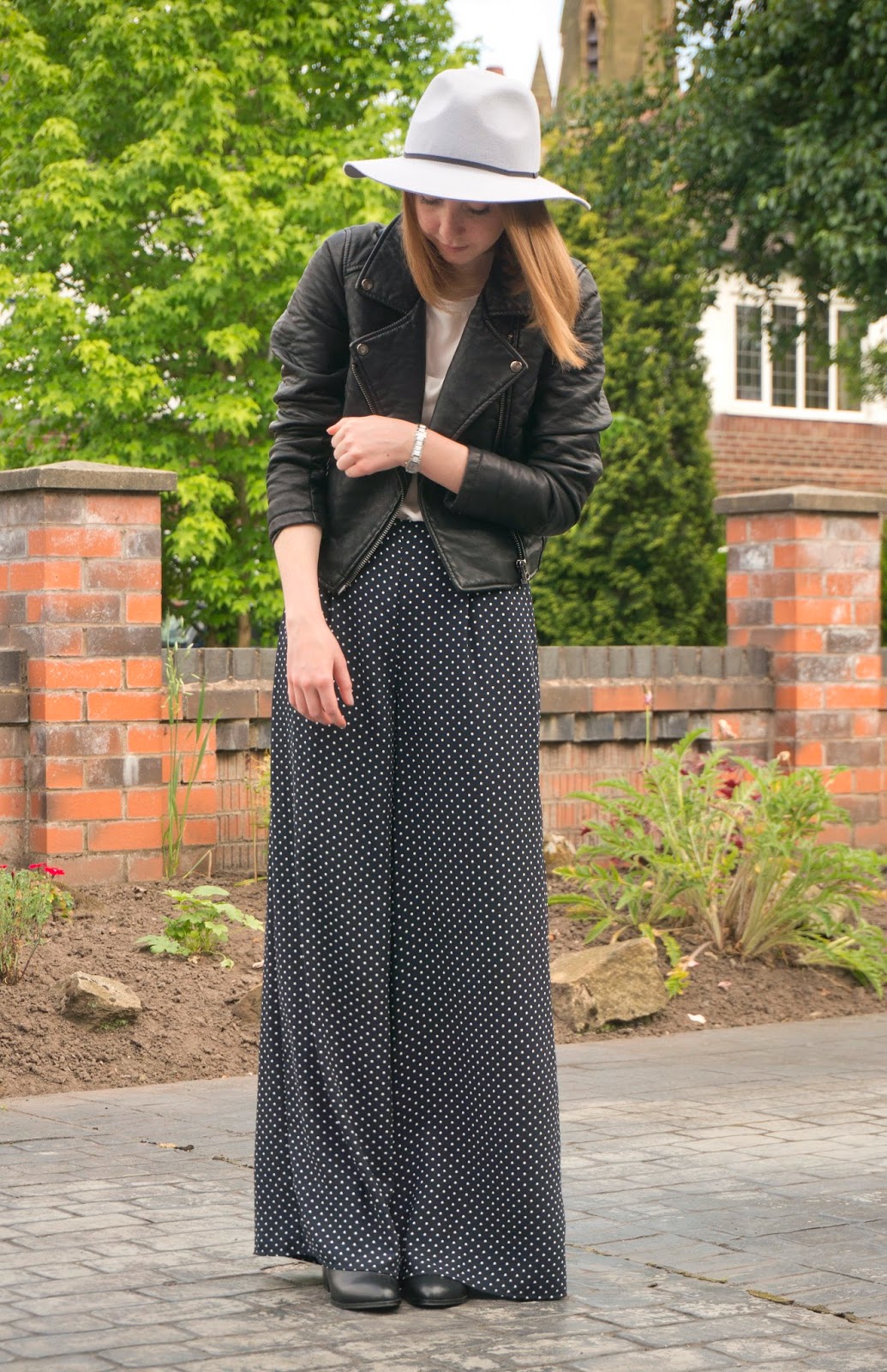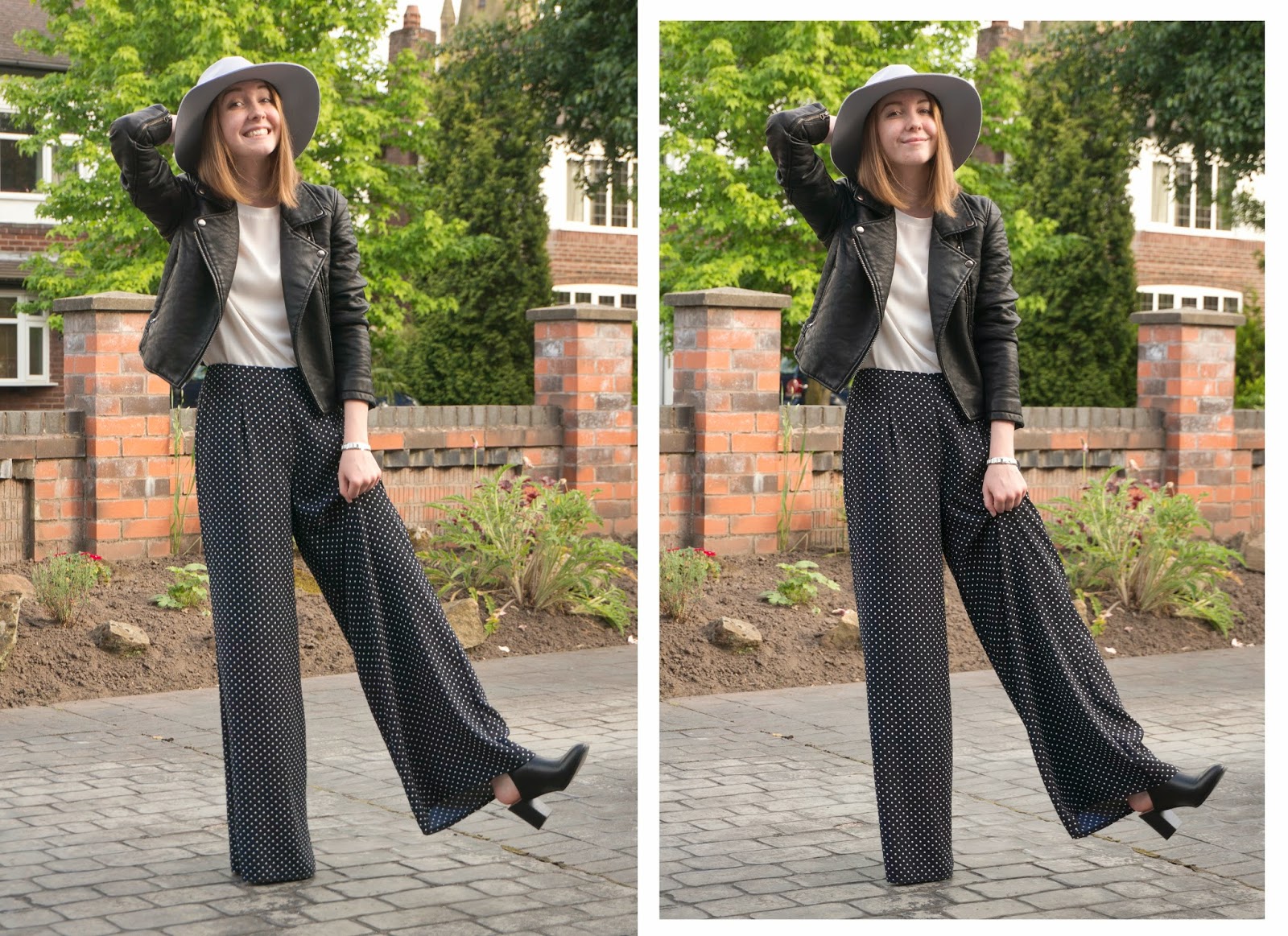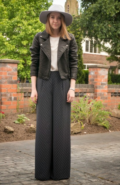 Skinny ankle-grazers and tapered cigarette styles are my usual go-to trousers of choice, so these wide-leg trousers are definitely out of my comfort zone, but I’m sucker for a polka-dot print! When I picked these pajama-esque babies up in Primark, it was one of those moments when your fashion-obsessed mind runs away with you and you think “ooh I can style them with this and this and this…”, so here I am doing a ‘One-piece Two-ways’ piece because my indecisive ways got the better of me yet again.