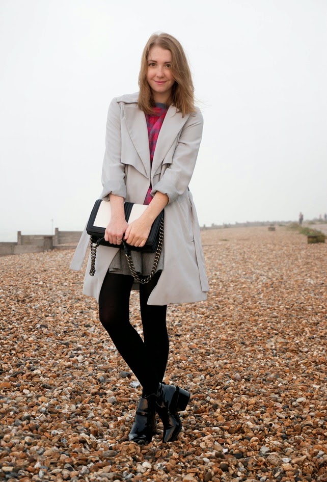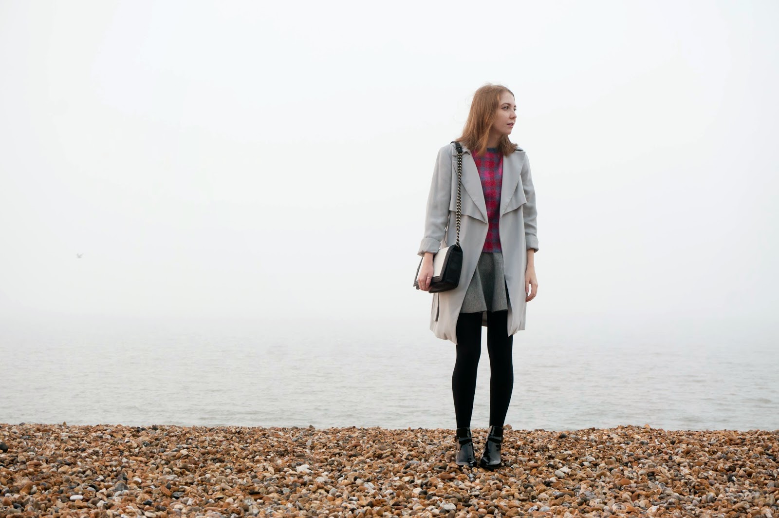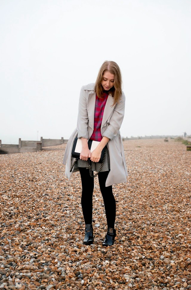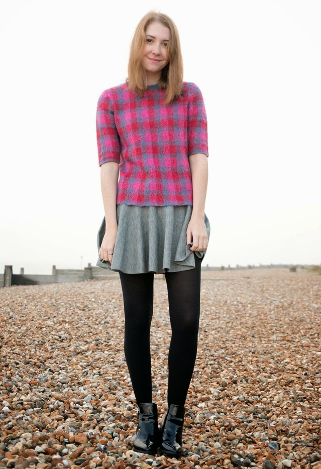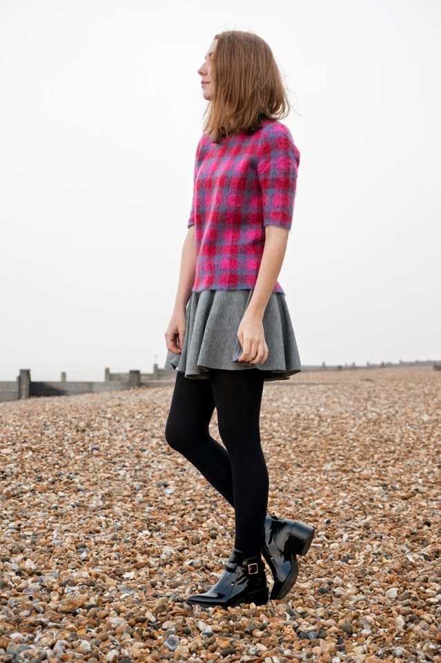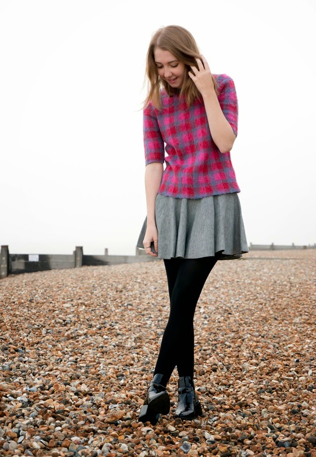 A walk down the foggy Whitstable beach last week called for nothing less than a cosy knit and boot combo. I absolutely adore the 1960s, and the eclectic checked print on this Asos jumper oozes that retro vibe. I’ve been wearing it with everything from jeans to culottes to cute flared skirts like this grey Asos one, which creates a light-hearted back-to-school look.