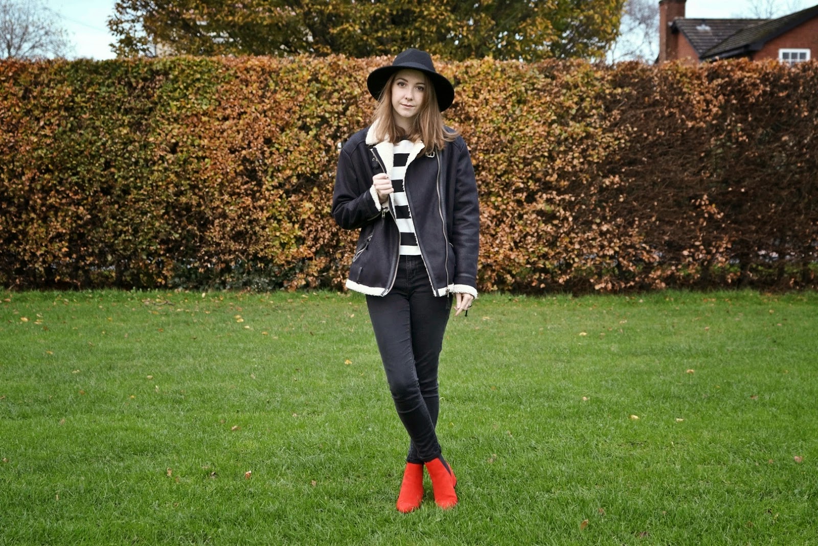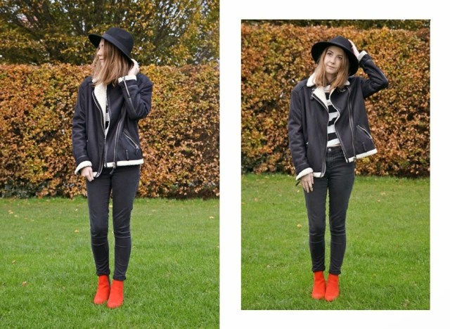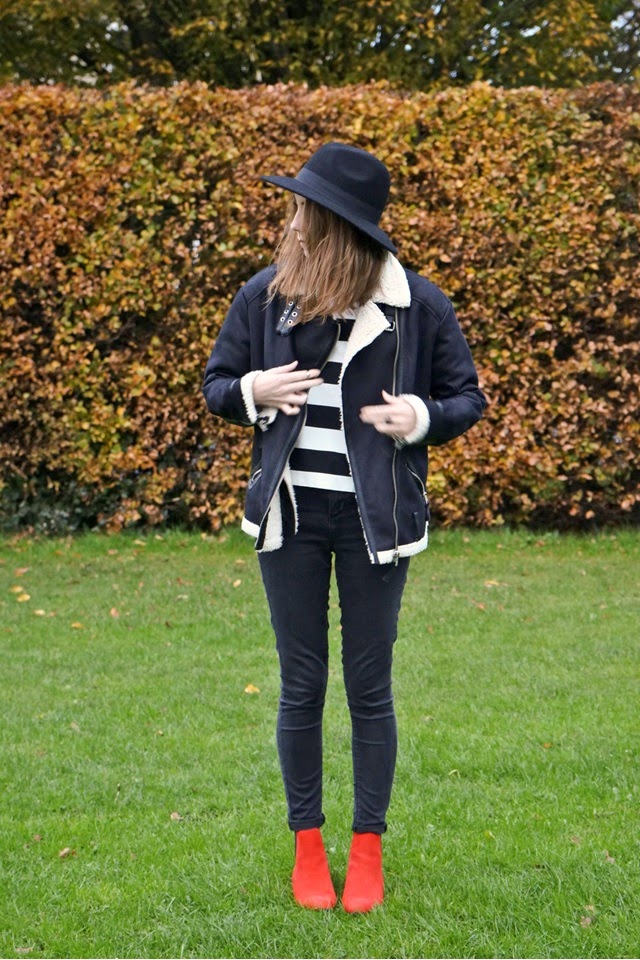 Onto other aspects of this blog post, this shearling jacket came back with me from a visit to Switzerland earlier this year and I’m so happy it’s finally chilly enough to wear the beauty again. Although it is a little on the big side, I love oversized items and it is so snuggly that I may just start wearing it as a dressing gown. I’m loving wearing these red booties at the moment but admittedly I’ve mainly been sticking to safe monochrome outfits, so hopefully they’ll be some more experimental posts coming up featuring them!