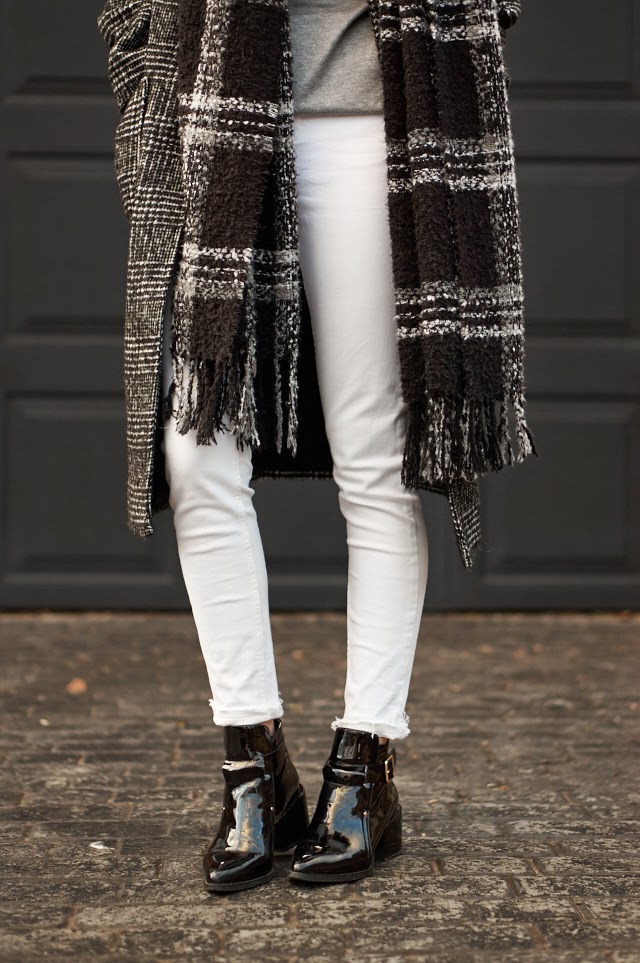 One thing I really hate is looking in my wardrobe and seeing an item hanging there which I haven’t worn in months. There are obviously certain items we don’t wear in particular seasons but when I clapped eyes on my white jeans the other morning when deciding what to wear, I had the sudden urge to break them out and try a winter white outfit. I practically live in my black skinny jeans in autumn and winter so this outfit was familiar yet a breath of fresh air. I balanced out the light and bright aspect with trusty grey and black tones for a monochrome outfit with a twist. I wouldn’t go as far as saying I’m now a white jeans convert, but I’m looking forward to trying out some more winter appropriate outfits but with a lil more colour!