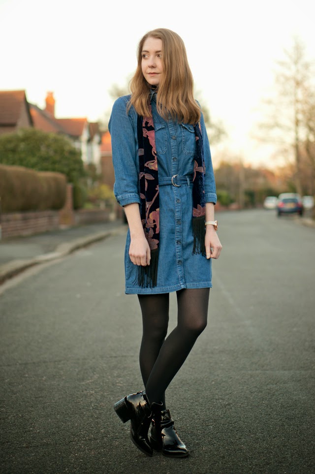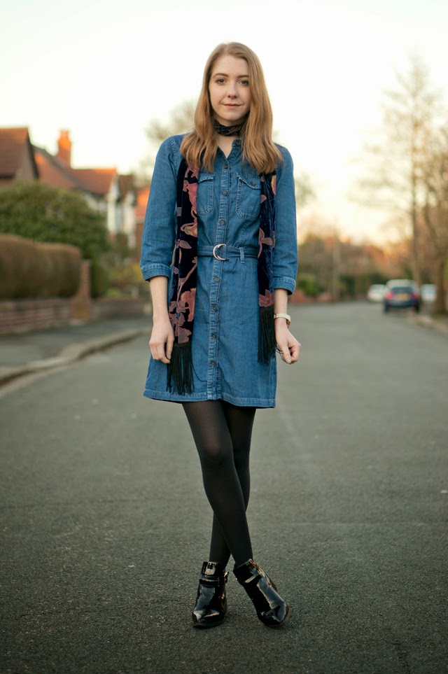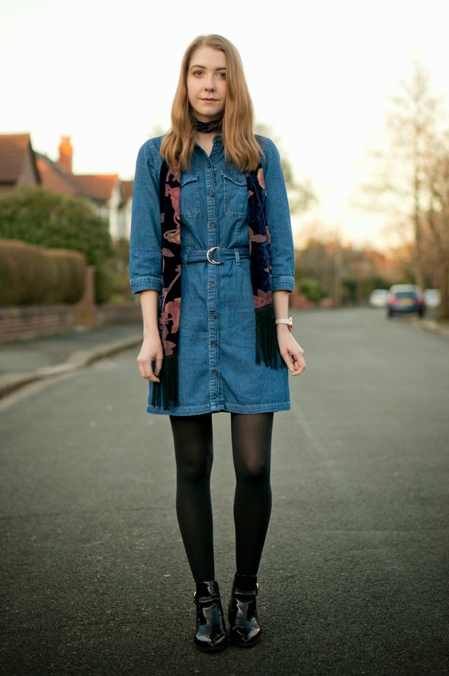 Denim denim denim, is there anything else on the high street at the moment? All I seem to want to wear at the moment is some form of the blue wonder, whether it’s a dress, skinny jeans, flares or a pencil skirt. And, I’m holding the sudden surge of the 1970s trend fully responsible! I’ve been wearing that Miss Selfridge dress (which you’re probably sick of seeing now) at least once a week, and have been mixing up the accompanying garments.