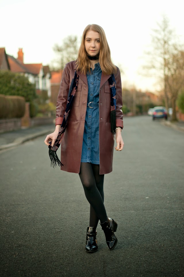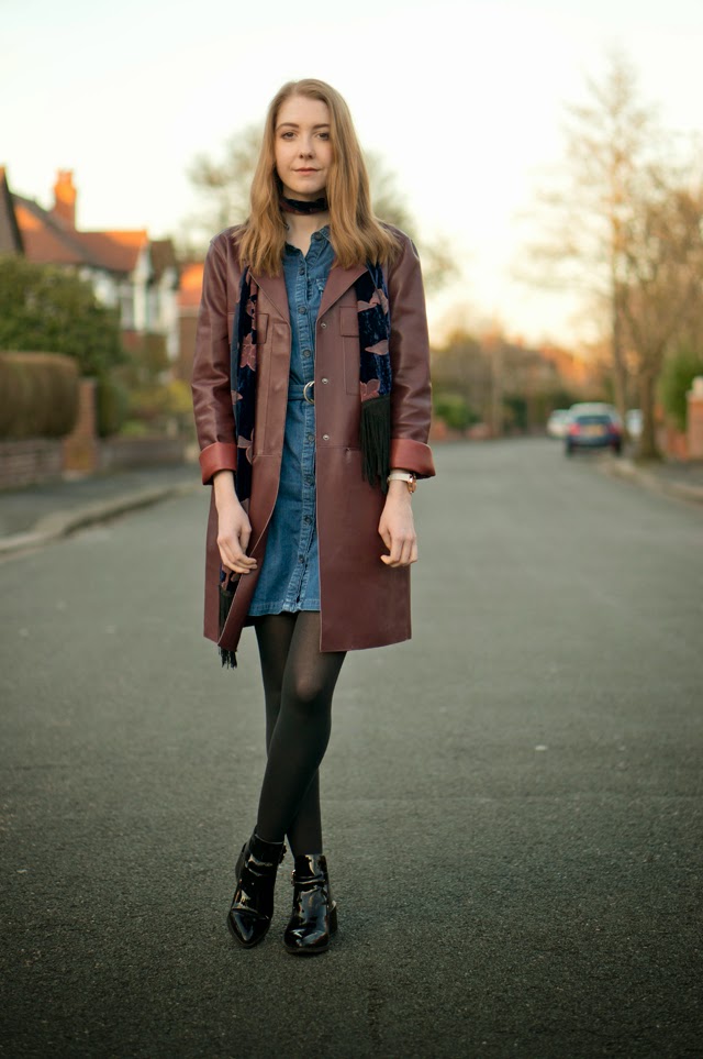 My lovely and super stylish auntie gave me this Zara burgundy faux leather jacket as she didn’t want it anymore, and it’s barely left my shoulders since (seriously, I think I’m addicted). It’s definitely a love or hate piece and has gained a few remarks/names, my favourite being “Matrix jacket”, but I’m loving wearing it with this dress and a skinny scarf for a super seventies vibe. The seventies are an era I never thought I’d be into, but I’m head over heels for it so far!