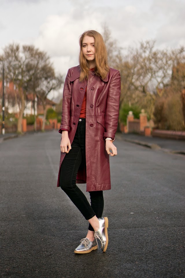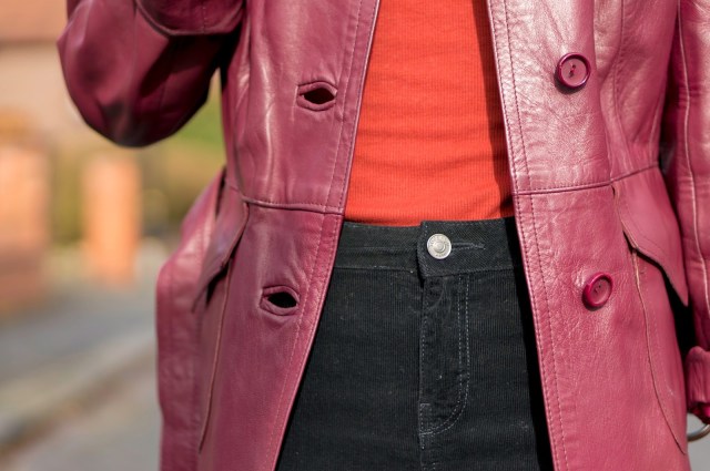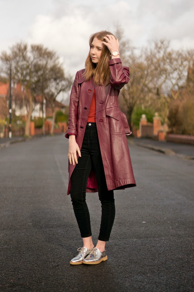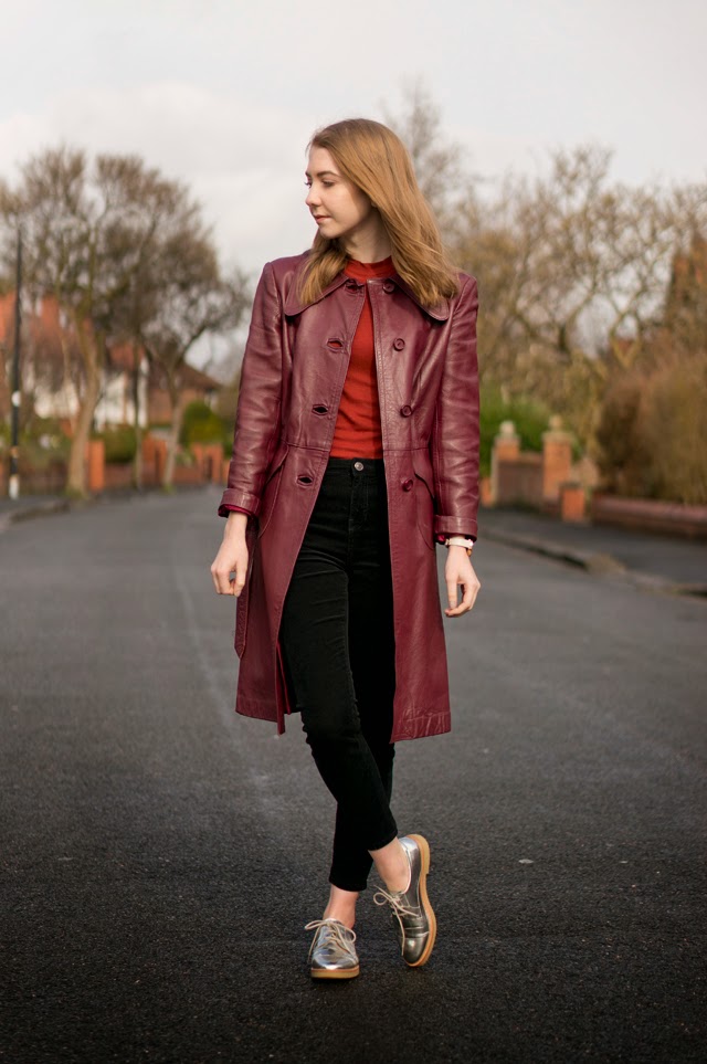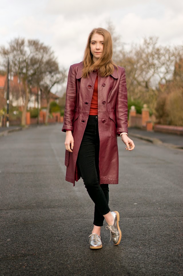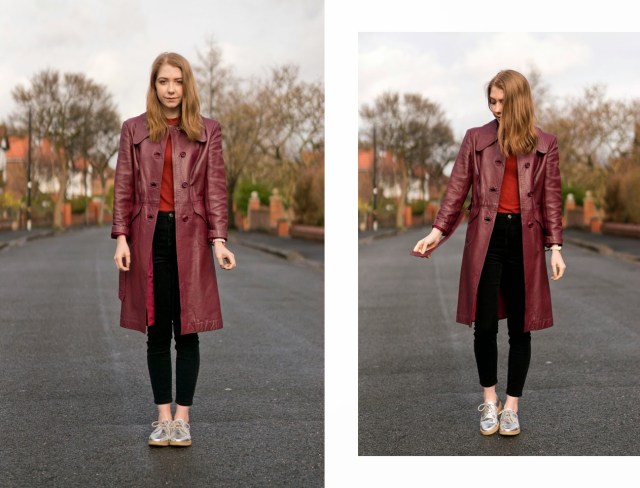 I always find vintage and charity shop shopping a real hit and miss. Sometimes I find absolutely nothing, but other times I’ll find a dynamite piece, like this vintage leather oxblood coat. Without getting too deep, I love how vintage items have a history, whether we know what it is or not. And I think it’s such a lovely thought that someone will have bought this very coat maybe 40 years ago, and done a little “woohoo!” when they found it too.